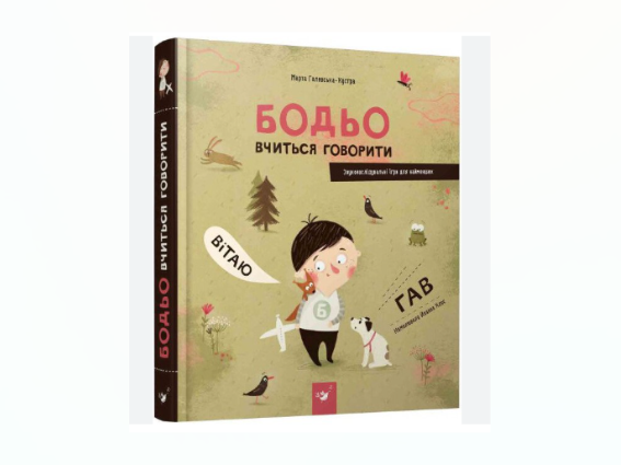 «Бодьо вчиться говорити» заохочує дитину до гри в звуконаслідування. Книжка актуальна від 10 місяців до того віку, коли дитина почне вимовляти перші слова. Це перша книжка з серії про пригоди Бодя і його родини. Кожна книжка серії є вімельбухом з логопедичними завданнями для дітей, що змальовує 17 знайомих дітям і пов’язаних між собою життєвих ситуацій. Кожна історія описує головні навички, які намагається опанувати дитина подібного віку. Історії побудовані спеціальним чином, щоб використовувати саме ту лексику, яка сприяє розвитку мовлення відповідно до віку і побудові динамічних стереотипів, бо саме в ранньому віці слова і звуки пов’язуються з безпосередніми діями. У книжці є тексти-підказки до мальованих історій, тож дорослий може нічого й не вигадувати, як у традиційному вімельбуху. У першій книжці Бодьо малює разом із мамою, намагається допомогти їй на кухні, вечеряє, сварить кота за розбитий вазон, допомагає заколисати молодшого братика, розмовляє телефоном з бабусею, разом з родиною вирушає на прогулянку містом та парком, грається з музичними інструментами, їде в село до бабусі та дідуся, купається в ставку, збирає суниці в лісі, знайомиться з тваринами й птахами, фотографується, співає біля багаття, їде додому поїздом. Структура книжки містить інструкцію для батьків, знайомство з персонажами, вімельбух-історії, мальовані завдання і наприкінці книжки — узагальнювальні завдання для дітей. Одна книжка – чотири речі: вімельбух-історія, завдання-гра, розвиток мовлення і закріплення необхідних життєвих навичок. Та, коли ви пропрацюєте з дитиною весь матеріал, не поспішайте віддавати книжки про Бодя знайомим: незабаром уся серія може стати вашим найкращим помічником у тому, щоб навчити дитину читати самостійно.